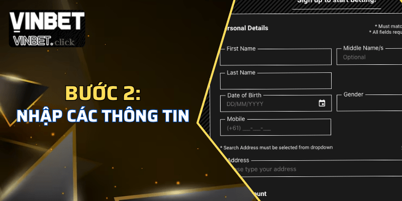 Bước 2: Nhập thông tin đăng ký Vinbet